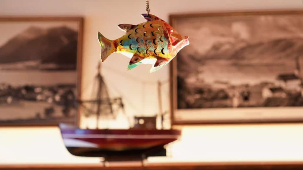 Michael ist ein Sylter Original und bringt seine nordfriesische Herkunft ganz selbstverständlich in seine Arbeit ein. Das Meer gehört für ihn einfach dazu und genau dieses Gefühl bringt er in die Küche in Schliersee. Auf der aktuellen Karte stehen unter anderem das Hummer-Rahmsüppchen, Austern „Sylter Royal“, Sylter Miesmuscheln, Friesenbrot mit Nordseekrabben und die Bouillabaisse „Marseiller Art“. Klassische Gerichte, sauber umgesetzt, ohne unnötige Spielereien. Genau diese Bodenständigkeit passt gut hierher nach Schliersee. Übrigens hat Petra Gercken auch zu den Fisch-Wochen ihren Schlierseer Ratskeller liebevoll dekoriert. Große Fischernetze, kleine Strandläufer, viele durchdachte Details. Die Dekoration ist perfekt auf die Fisch-Wochen abgestimmt, ohne kitschig zu wirken. Mit der Sonne, die heute durch die Fenster scheint, und den gelben Rosen auf den Tischen fühlt es sich fast schon ein wenig frühlingshaft an.
